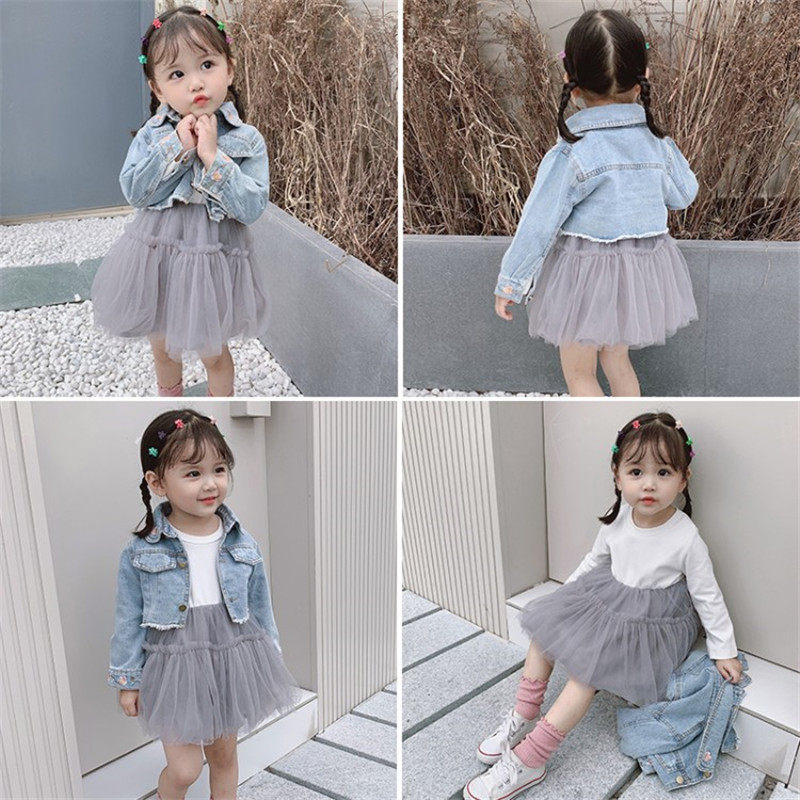 Girls' suit children's gauze skirt two-piece set 1 year old 23456 baby spring and autumn long-sleeved dress denim jacket