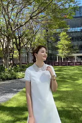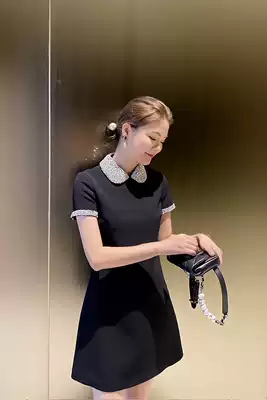 Custom hand-sewn imported diamond collar straight A-line pendulum Japanese three-piece simple atmosphere thin dress