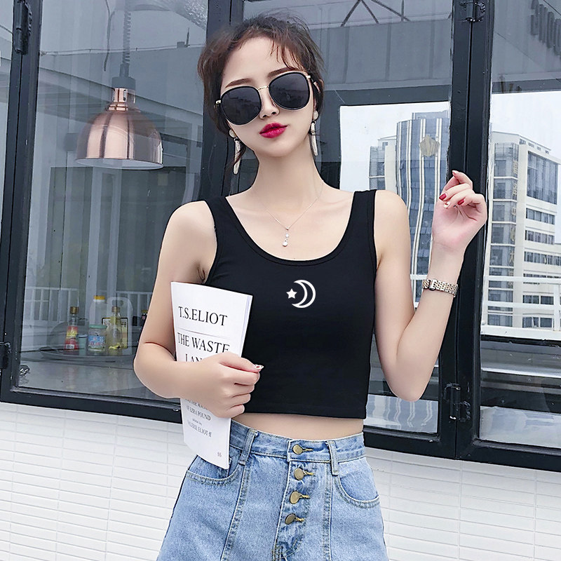 Camisole Female ride short tight summer black sleeveless bottom high waist umbilical top Korean version of the moon star