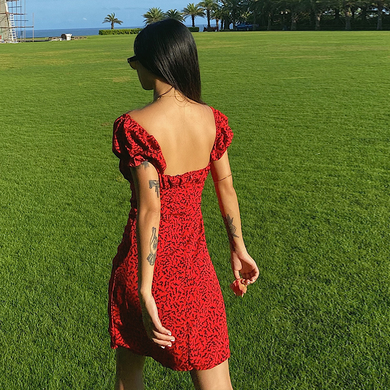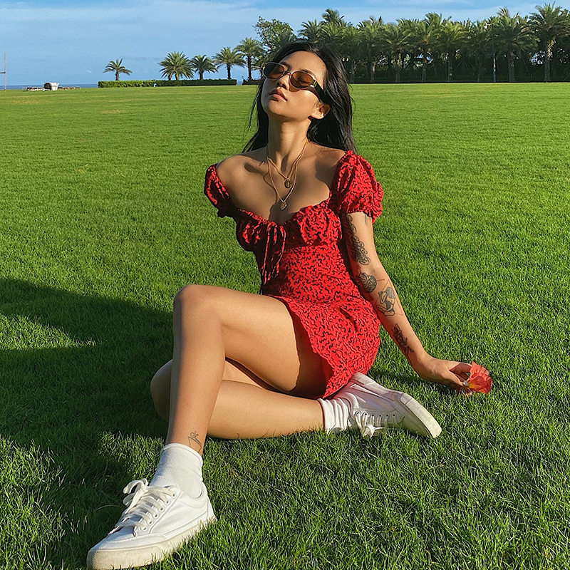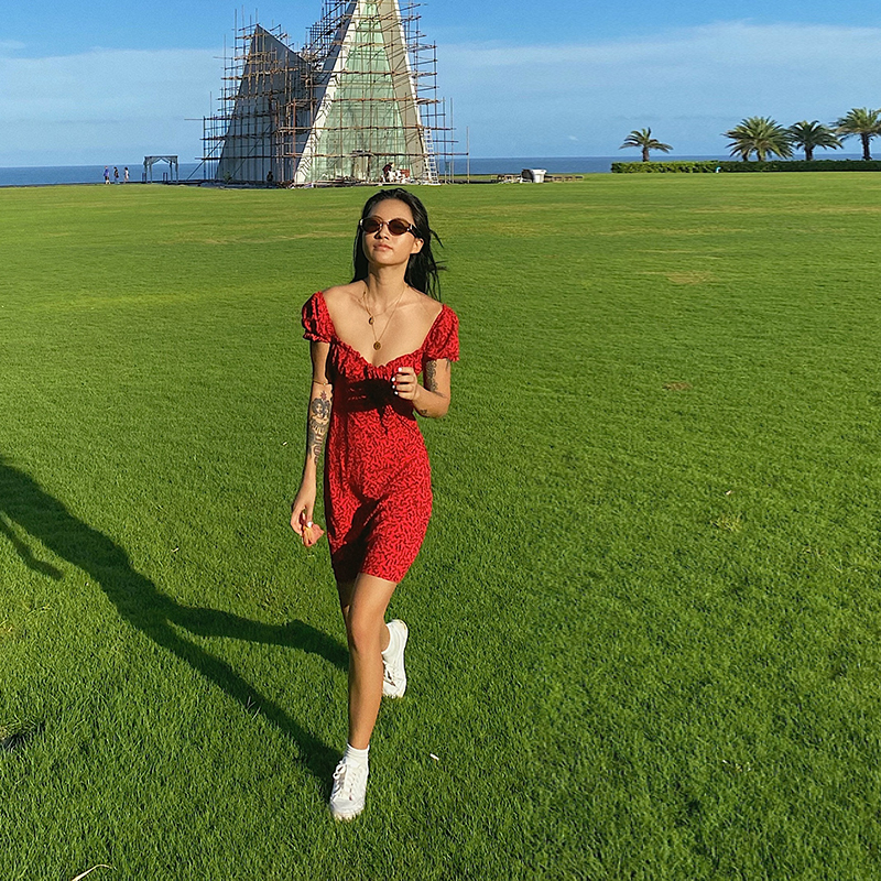 Ancient Castle Goddess With a Shoulder Red Dress Code Cashew-style Waist Display Slim Temperament Sexy Open-shoulder Holiday Dating Short Dress
