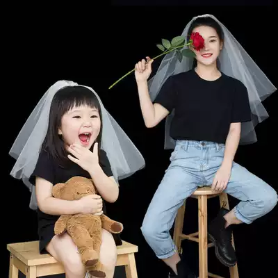 New children's veil princess mother and daughter parent-child net red photo props hippocampus baby birthday year-old headdress white
