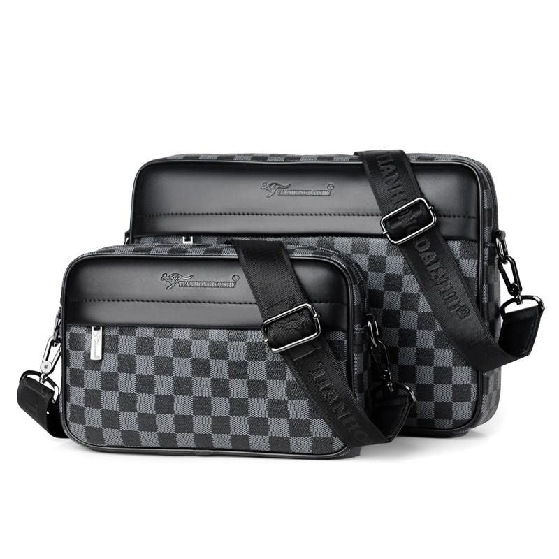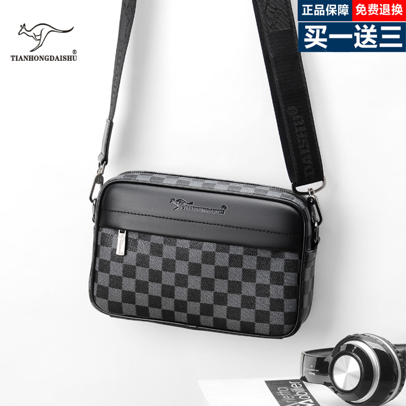 Tianhong Kangaroo Men's Bag Shoulder Crossbody Crossbody Men's Bag Middle-aged Dad Casual Leather Bag Men's Plaid Backpack