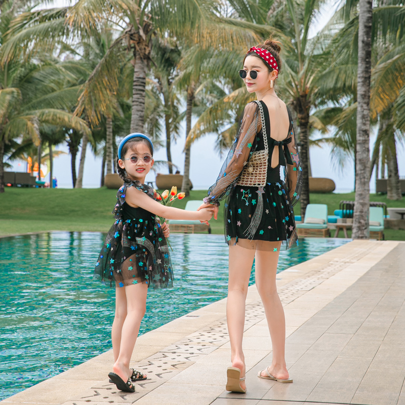 The new Korean version of the jumpsuit flat corner swimsuit girls cute swimwear parent-child swimwear show thin belly