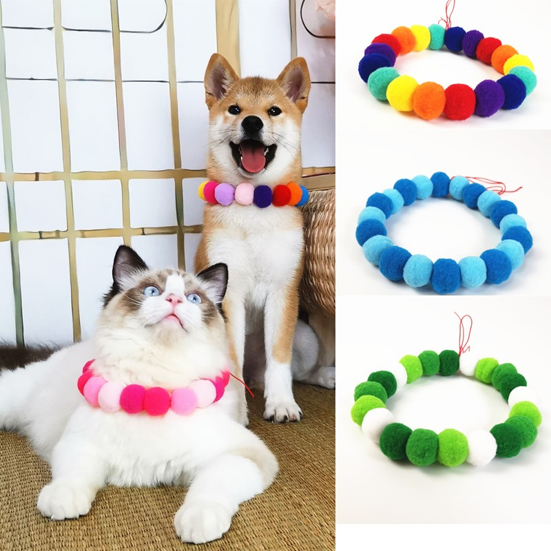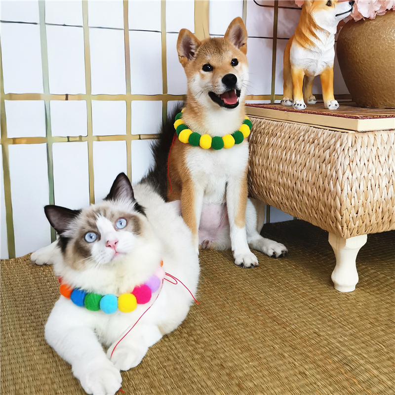 Pet Rainbow Sugar Fruit Color Matchup Dog Cokie Teddy Kitty Kennel Kennel Red Necklace Wool Ball Necklace Ornament
