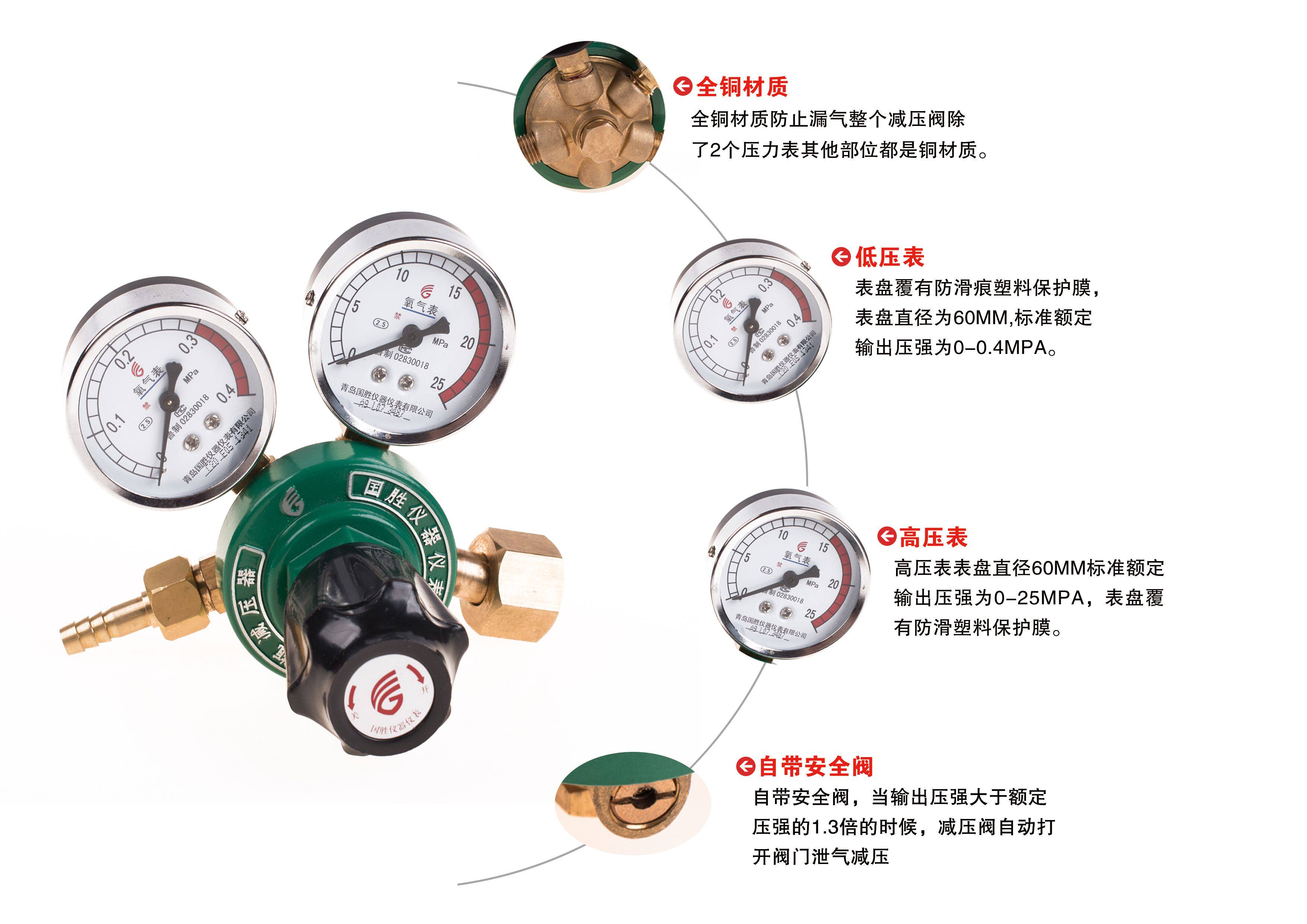 Qingdao Guosheng Oxygen Pressure reducer YQY-6 All-copper oxygen reducing valve 0 4MPA Gas decompression pressure meter