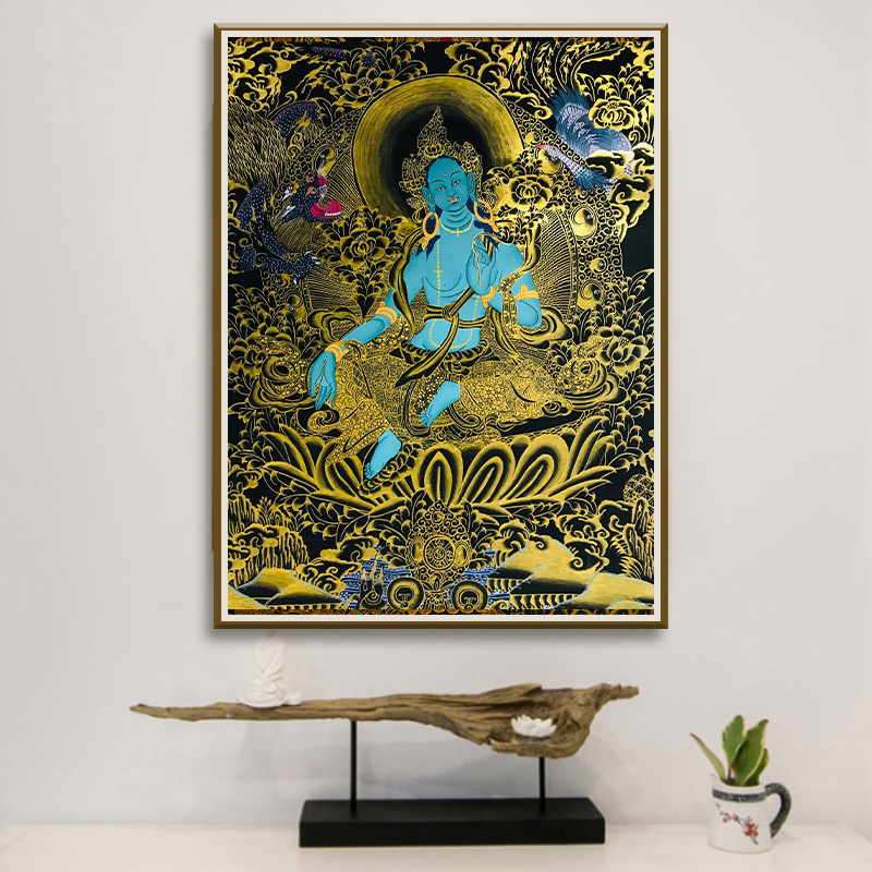 Save the eight difficulties Green mother Thangka hanging painting hand-painted Tibet Qinghai Hot Gong bless the female Manjushri Bodhisattva Buddha Hall God of wealth