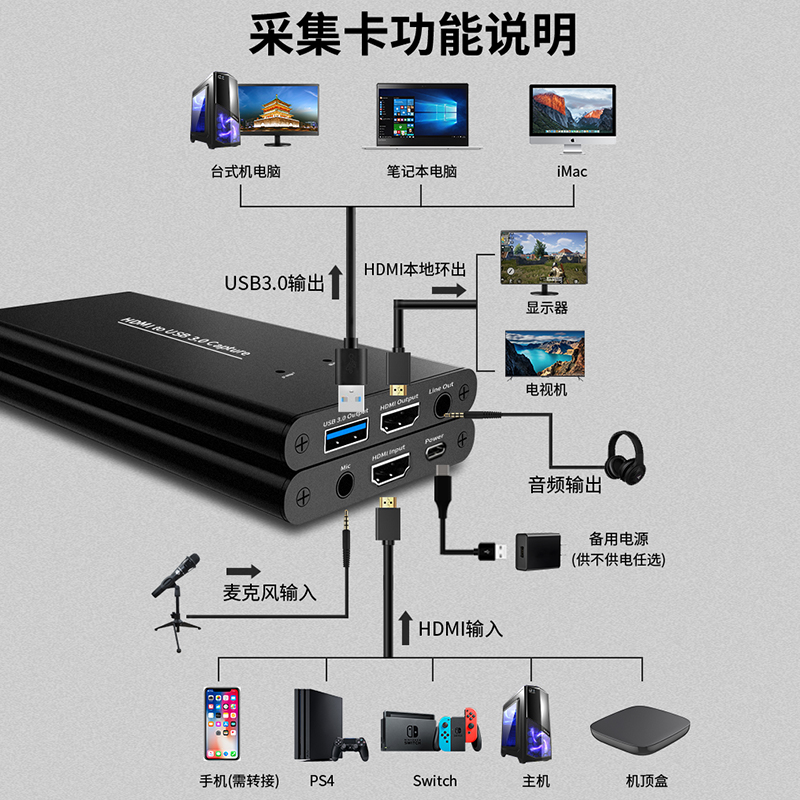 USB3 0 HD video HDMI capture card with 4K loop out computer live box PS4 switch recorder