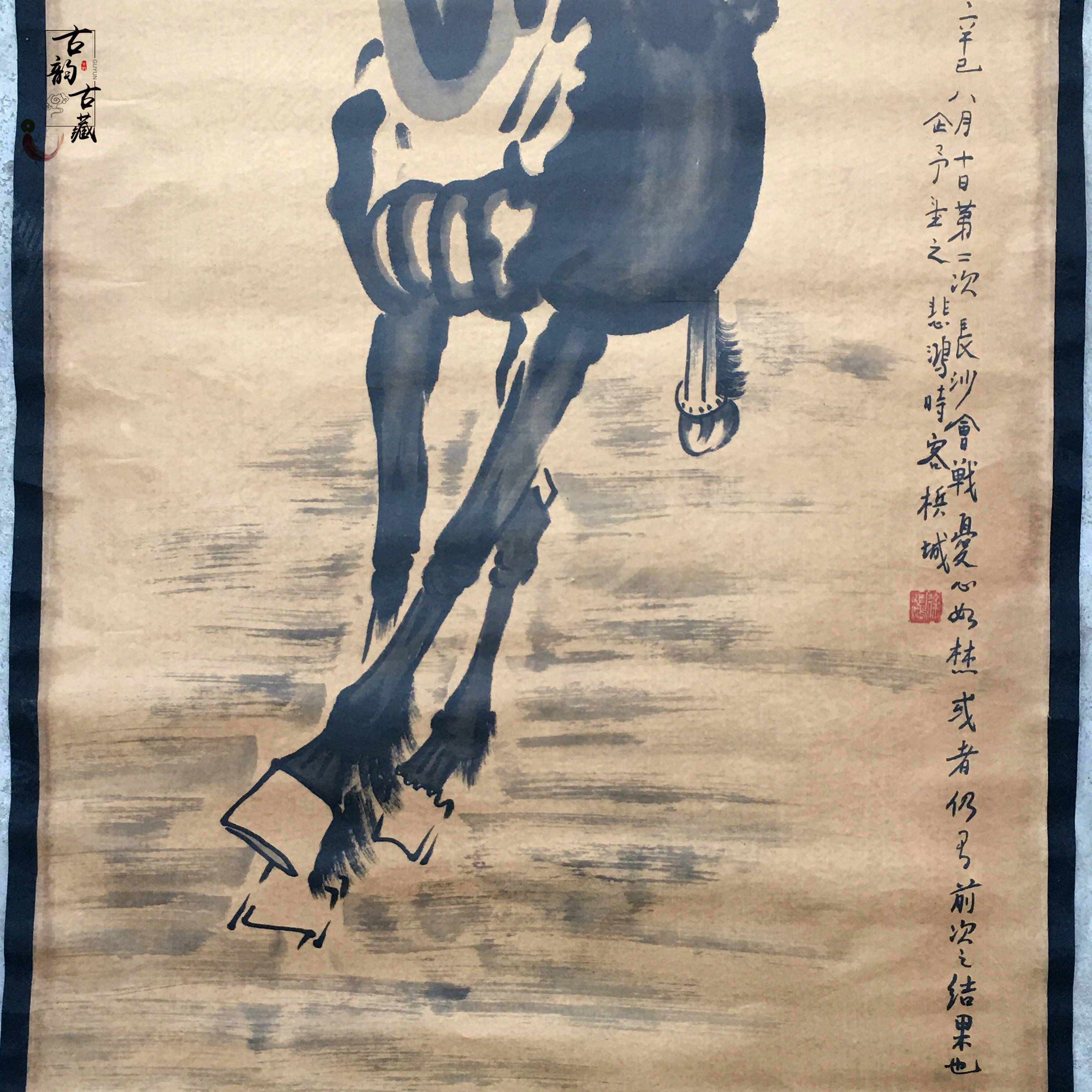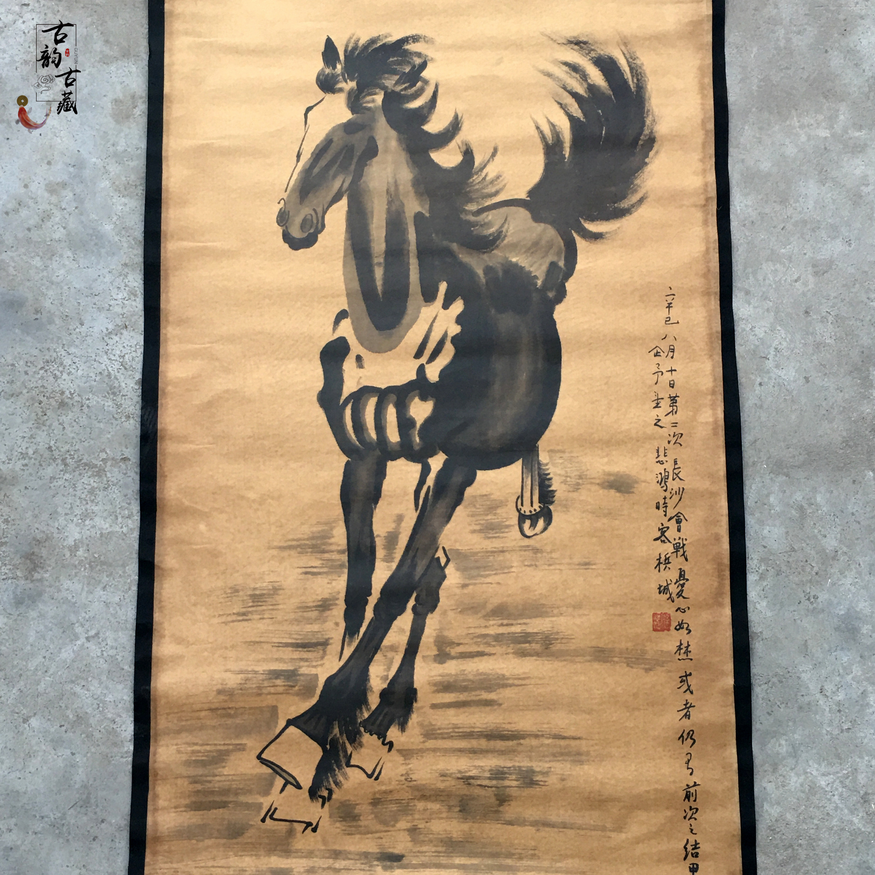 Antique Xu Beihong horse portrait ancient calligraphy and painting collection home decoration living room nave hanging painting imitation old-fashioned scroll painting