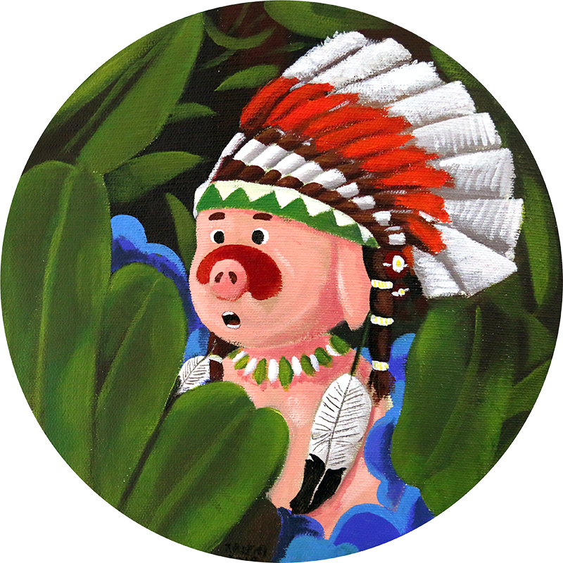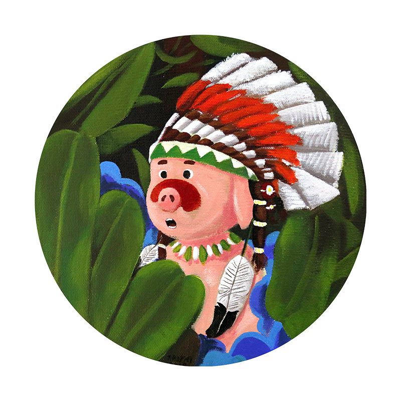 (limited to 99 edition) Search Hunter Chen Jianzhou "Indian Little Pigs" limited edition painting with mounting 35cm