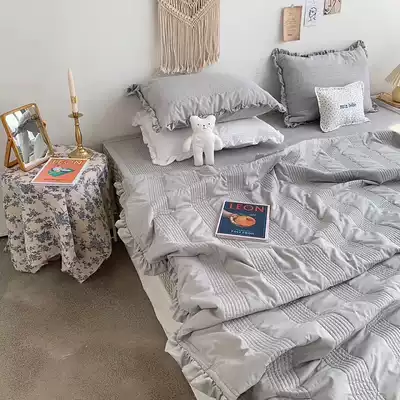 Fairy bedroom bi into paragraph Yangpai icons for bed cover ruffled South Korea ultra-fire of white chiffon summer three-piece suit