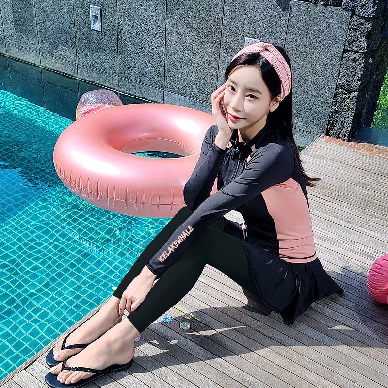 Long-sleeved swimsuit women's five-piece set two-piece skirt-style slim trousers sunscreen quick-drying men's three-piece hot spring swimsuit couple wear