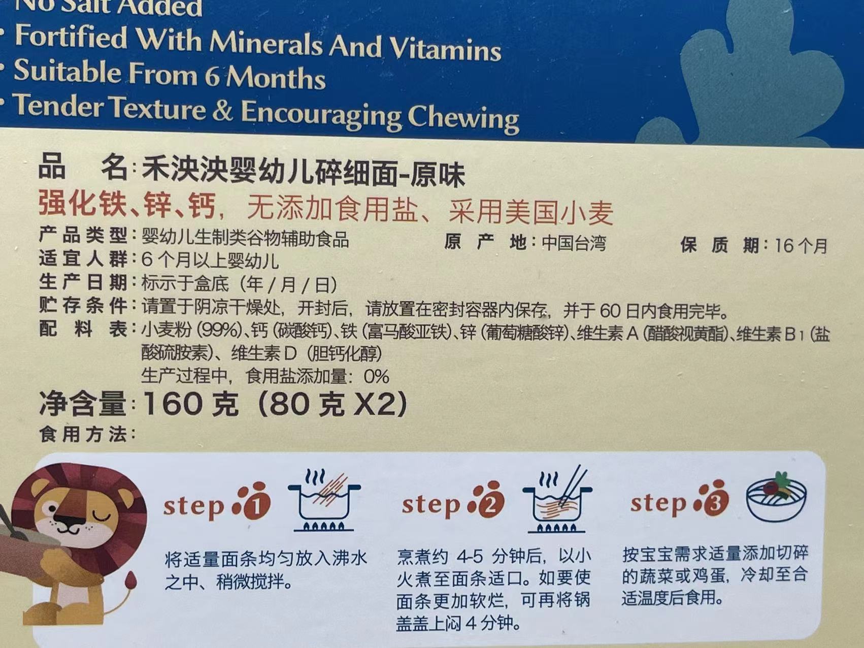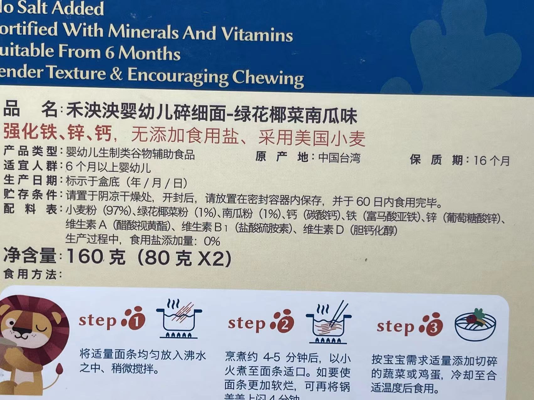 He Yang Yang broken fine noodles green broccoli flavor baby broken noodles 160g (packed in 2 bags