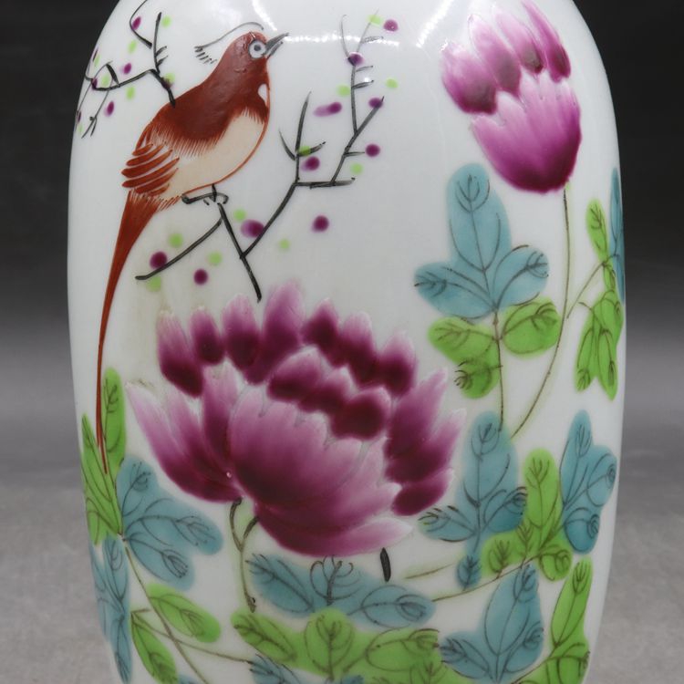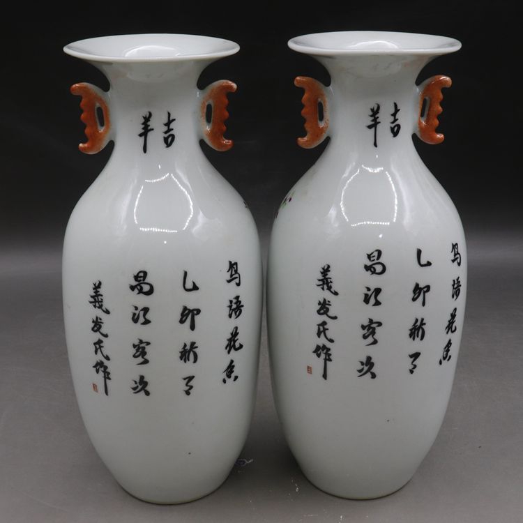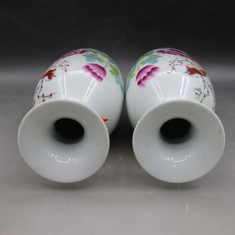 (Hand-painted) Qing Tongzhi Flower Bird Tutu Twin Ear Bottle A Pair Of Ancient Play Antique Imitation Antique Porcelain Home Old Goods Collection