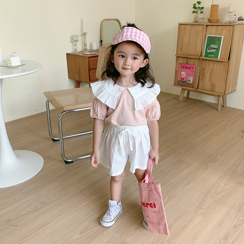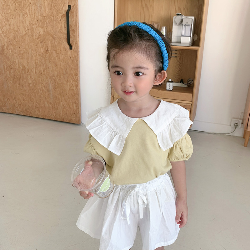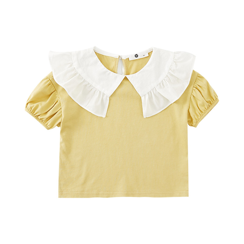 Yang Mei Home Children's clothes 2022 Summer clothes new girl short sleeve blouses baby turned collar cover 100 hitch a half sleeve