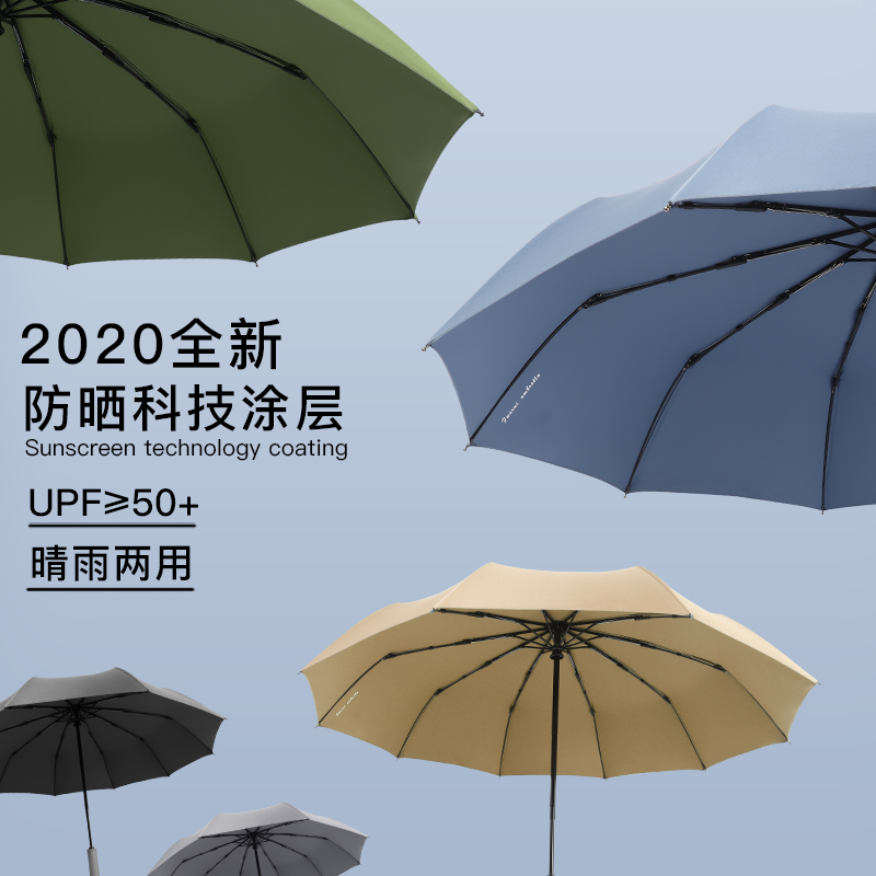 Simple tonal glue fully automatic umbrella female reinforcement folding rain and rain umbrella male large oversized double umbrella