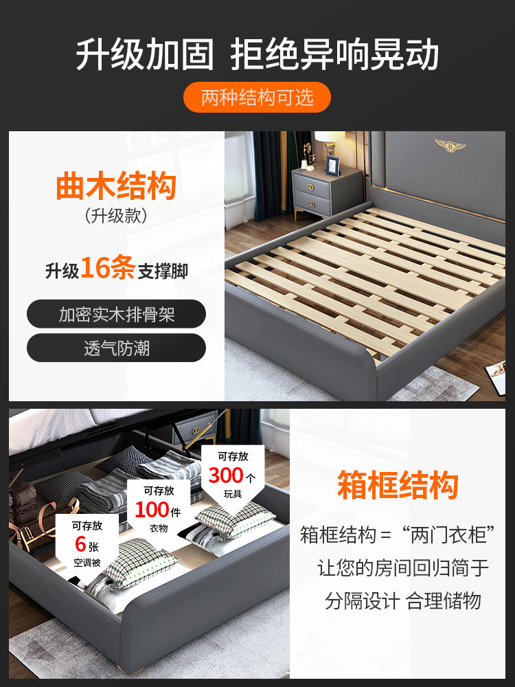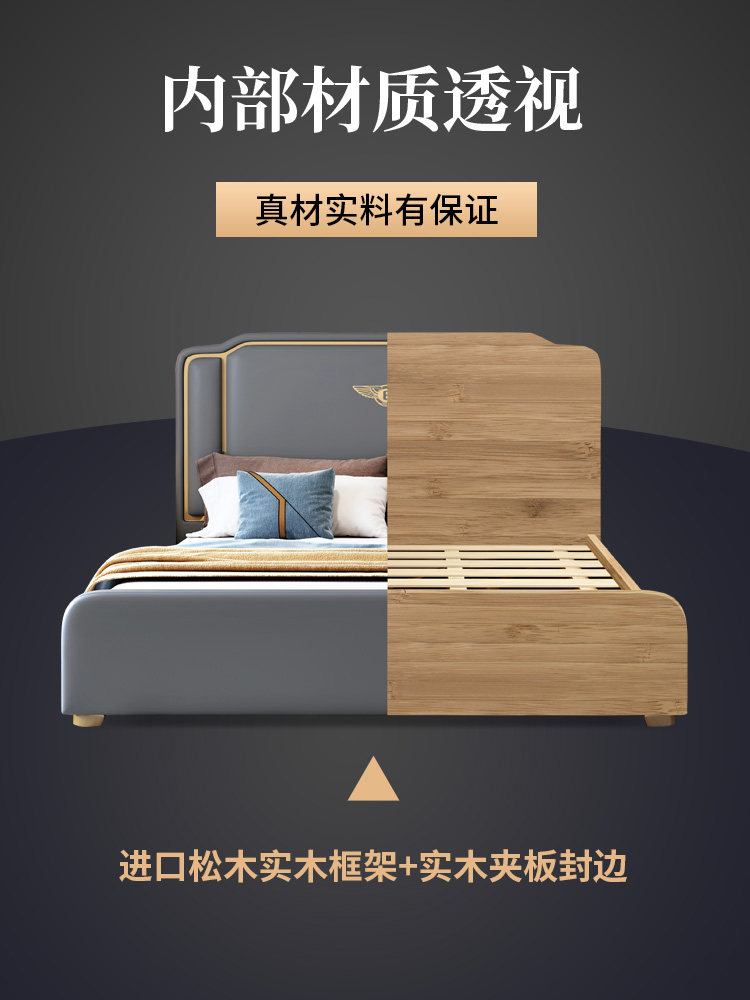 Bed Modern minimalist solid wood ins net red storage soft bag Nordic wedding bed American bed light luxury master bedroom double bed