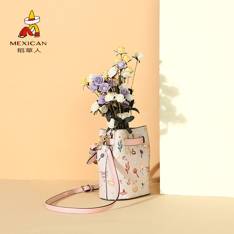 Rice Straw Man Bag 2021 New Tide Water Bucket Bag Single Shoulder Bag Fashion Little Crownins Autumn Winter Hand Slanted Satchel