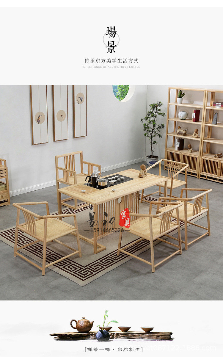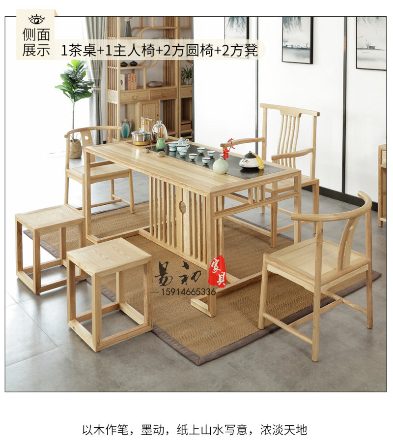 New Chinese style Zen coffee table Kung Fu tea table old elm tea art table Japanese style solid wood modern minimalist ash wood tea table - Taobao