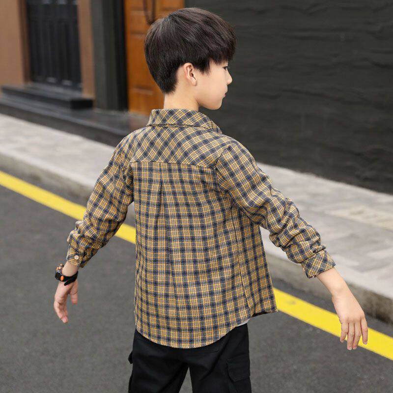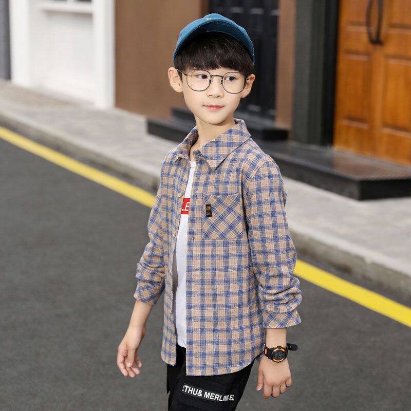 Boys shirt 6 Spring and Autumn thin coat 7 children 8 middle and big Child 9 spring and summer 10 year old boy long sleeve plaid shirt tide 12