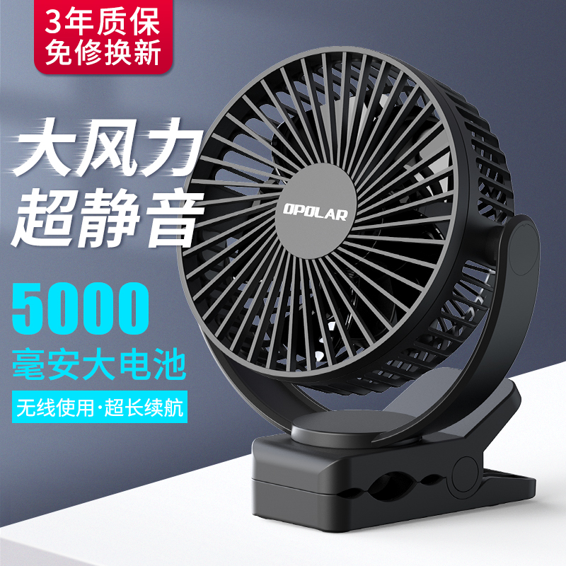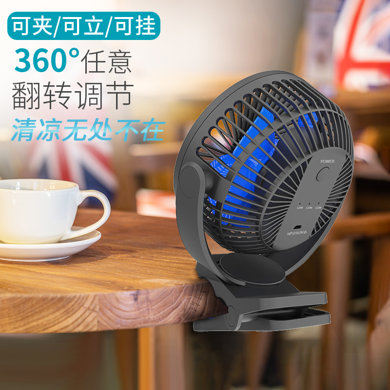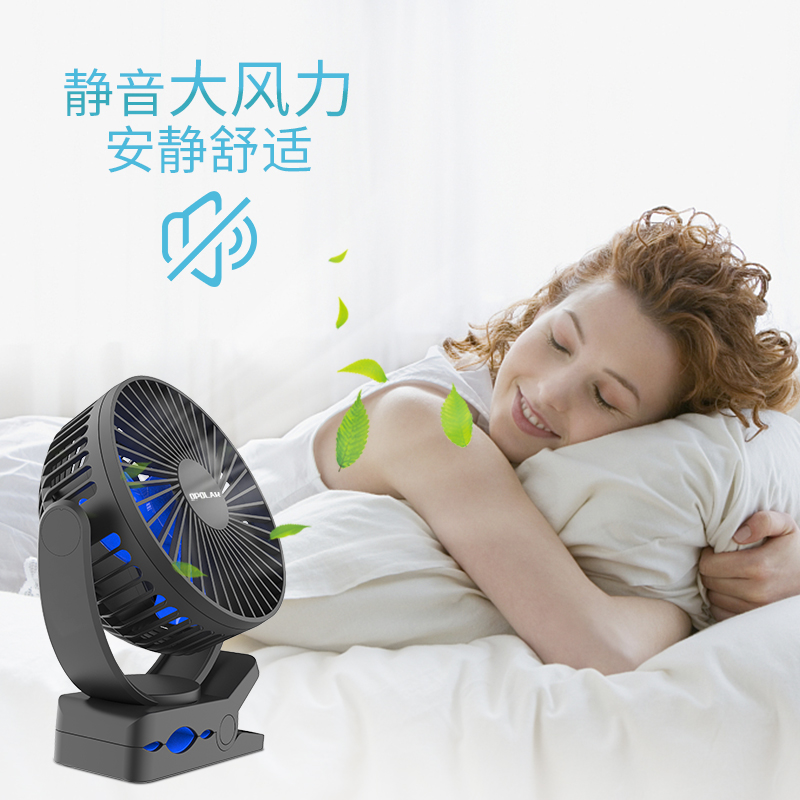 USB small fan Student dormitory bed portable silent big wind Office bedroom desktop baby charging clip-on fan