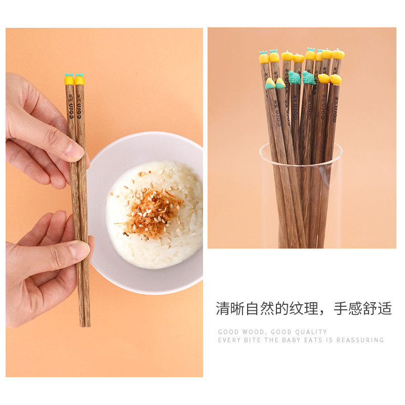 Solid Wood Children Chopsticks Home Toddler Baby Special 5 Cartoon Cute Teenage Girl Two-stage 6 Years Old Wood 4 Short Quick Son 8