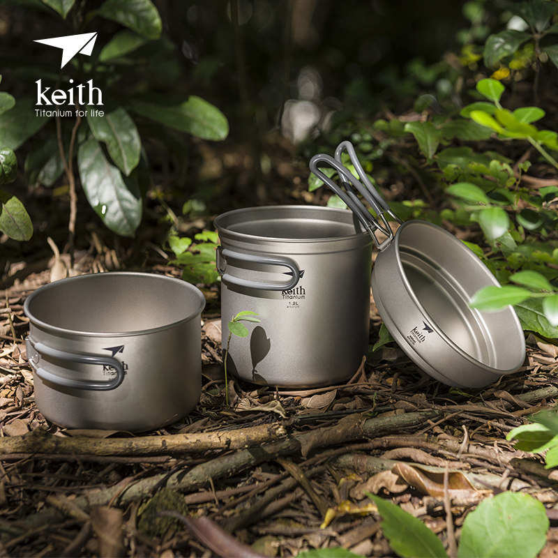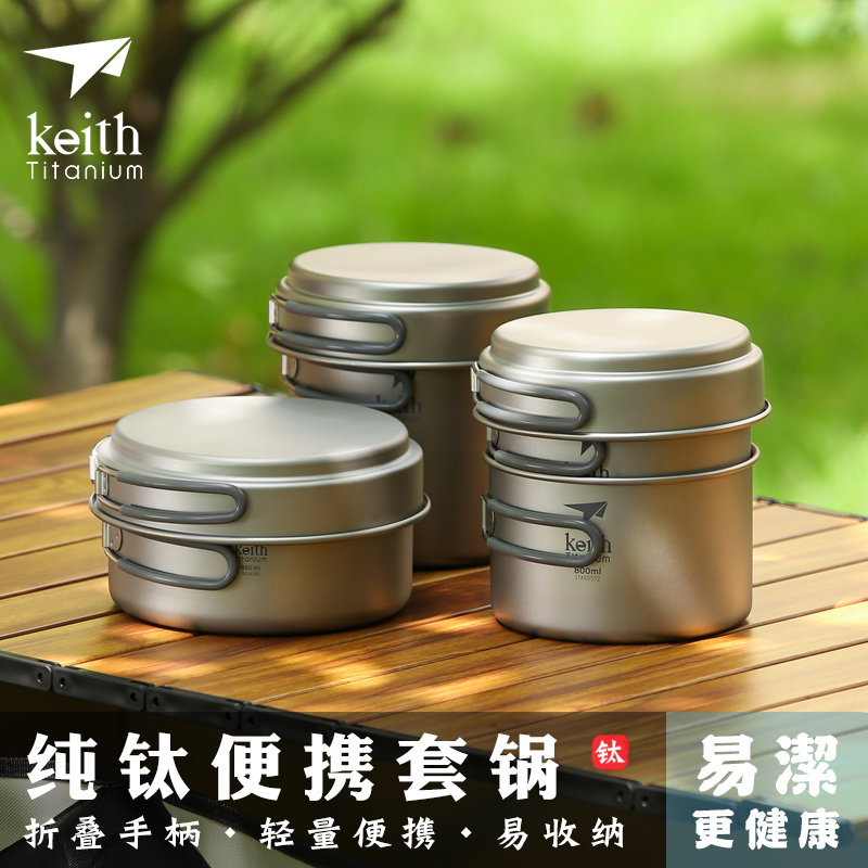 Keith Shears Titanium Pan Pure Titanium Cover Pan Outdoor pot Camping Cooker Portable Dining Box Lunch Box Field Titanium Cutlery