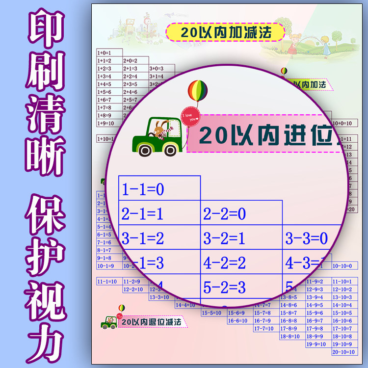 Addition and subtraction formula table wall chart within 20 children's primary school math poster school unit conversion formula wall sticker