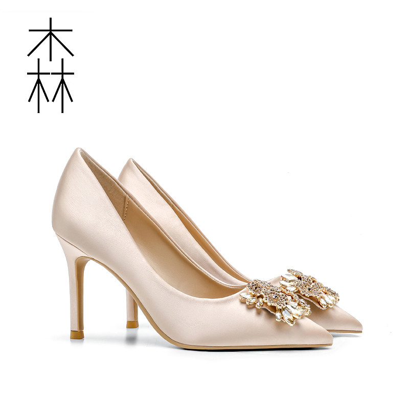2020 New wedding shoes bride bride shoes and tip tip tip heel shoes Champagne heels
