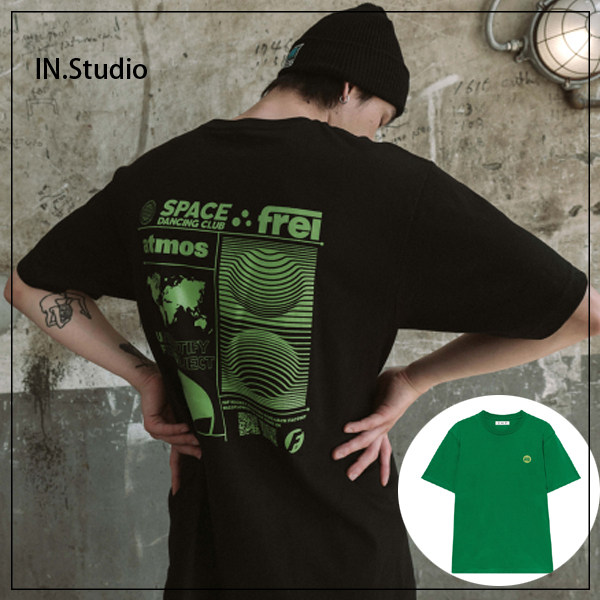 INstudio20 Summer Korean designer brand FREI joint new back pattern round collar T-shirt