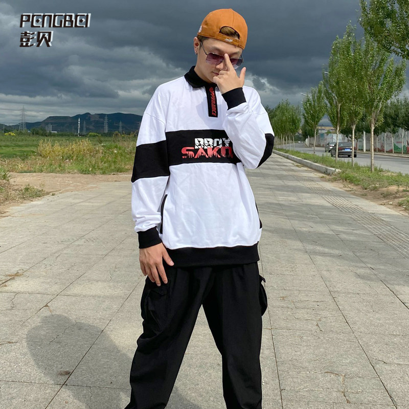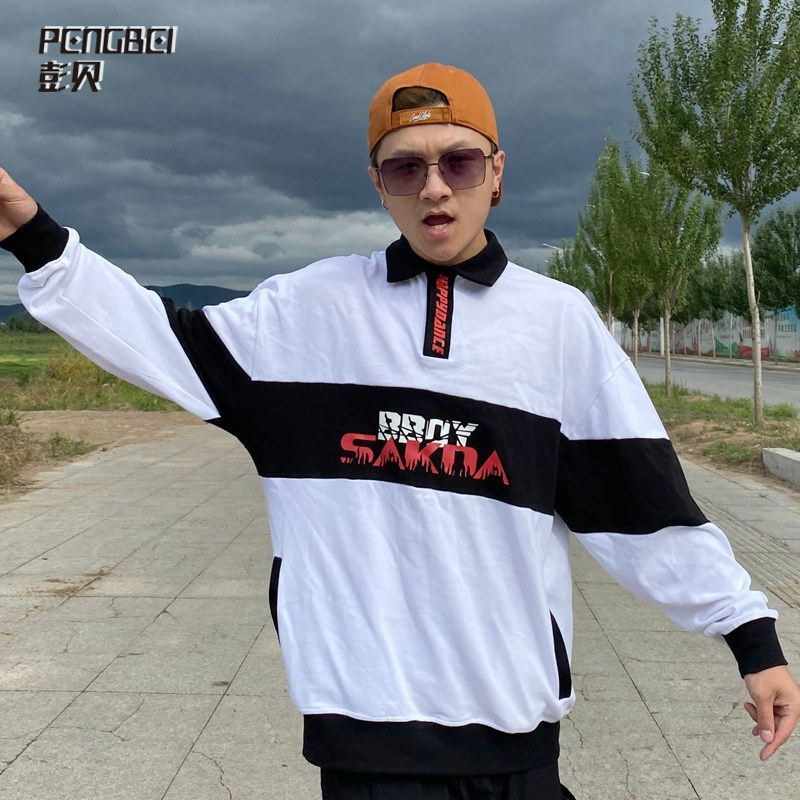 Heavy 280G cotton hip-hop loose POLO shirt stitching shirt collar printed T-shirt street dance team custom 168