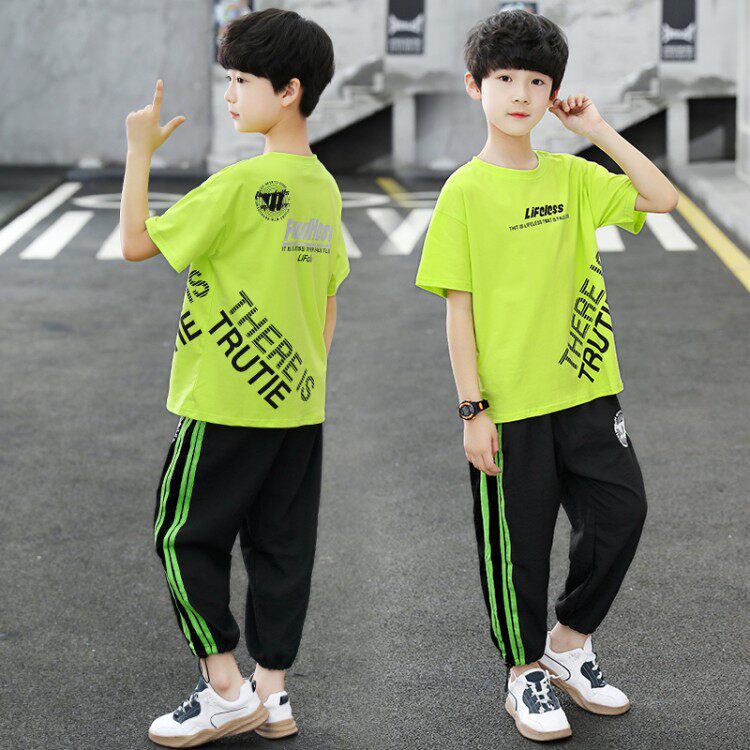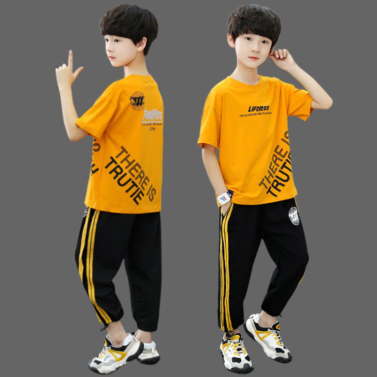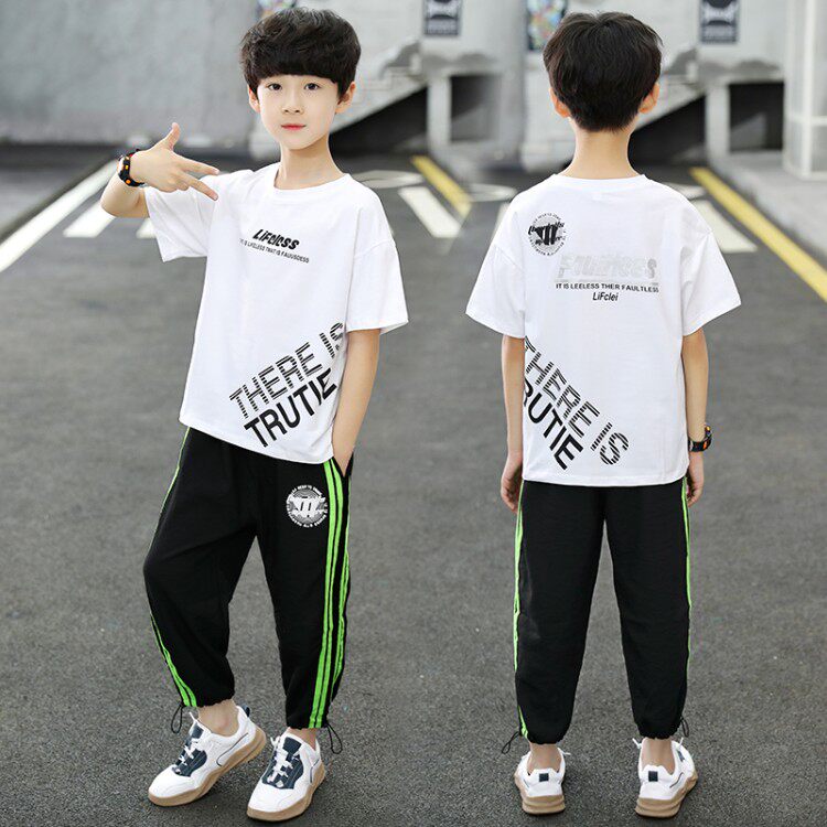 Boys summer suit 2022 new children's sports Western style summer trousers Korean version of the boy short-sleeved two-piece tide