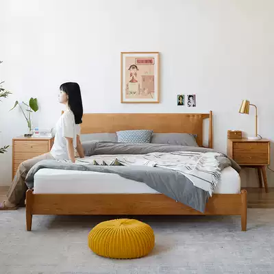 Nordic solid wood bed 1 8M modern minimalist small apartment soft by cherry wood leather bedroom Japanese household double bed