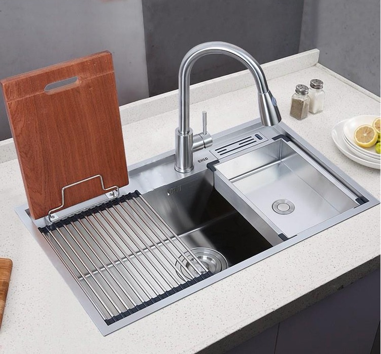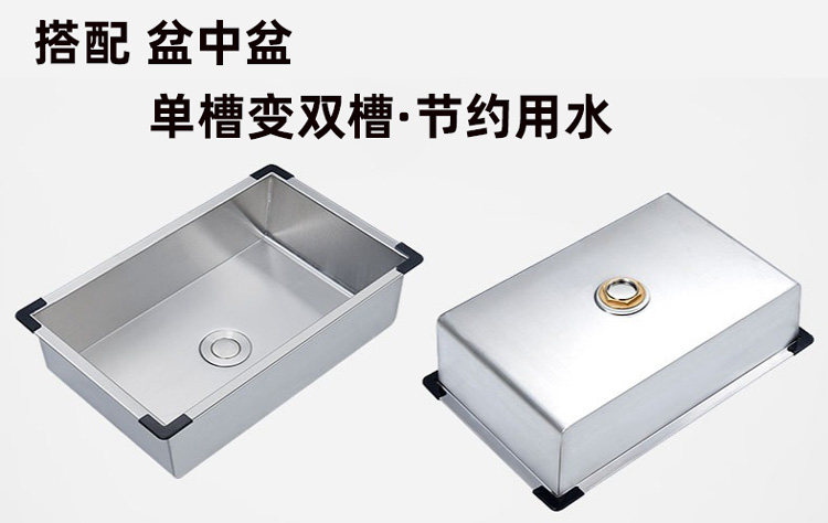 Multifunctional large single sink thickened handmade sink 304 stainless steel vegetable washbasin kitchen household under-counter vegetable washbasin
