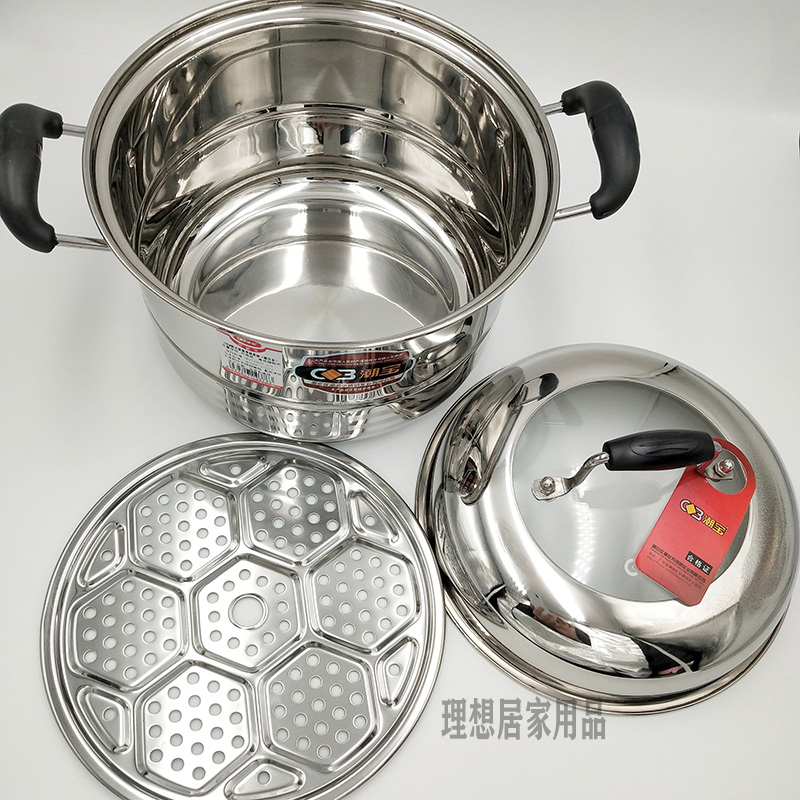 Home Kitchen Tide Pans Stainless Steel Soup Pan Steamed Pan Rebase With Grate Combined Lid Thickened Glass Lid Cooking Pan-Taobao