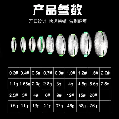 Olive-shaped lead fall fishing Japanese lead pendant hollow olive-shaped lead lead drop fishing gear fishing gear fishing accessories