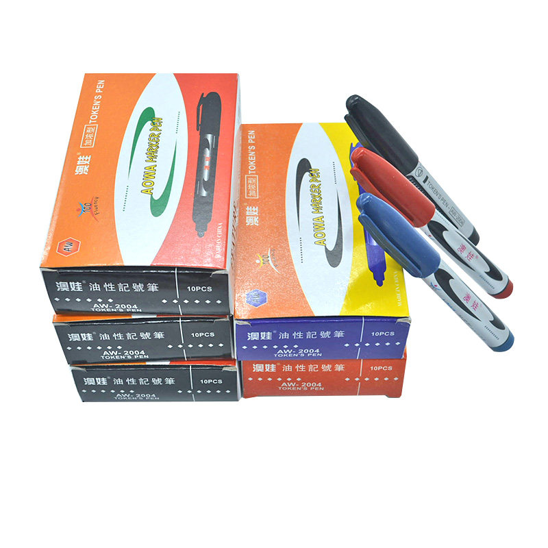 10 boxes of mark pen oil non-rubbable logistics packaging pen Fast dry strange pen add coarse cardboard box ink red blue black dry spring office store