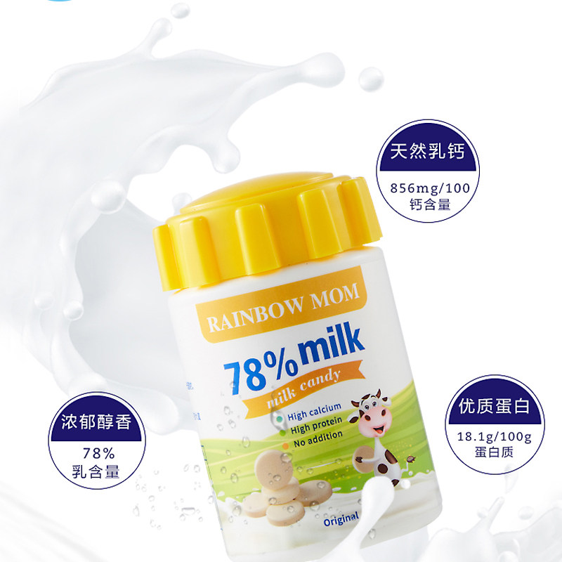Thai imports Rainbow Mama 78% Milk tablets Milk Bay 50g Dry Eating Cheese Snack children Tonic Calcium Grinding of Tooth Snack