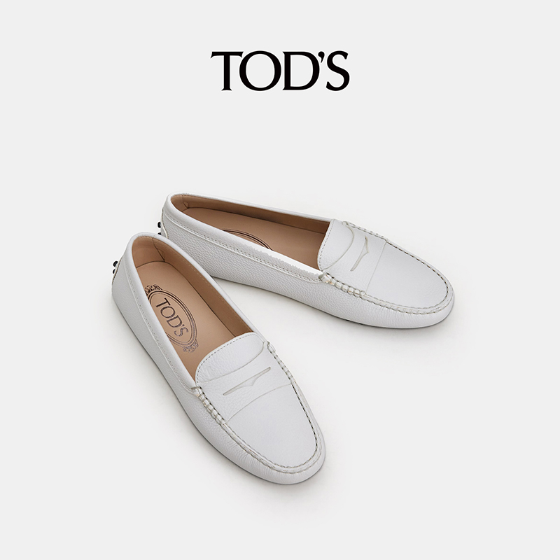 TODS Official Women's Genuine Leather Doudou Shoes White Soft Sole Flat Fashion Casual Leather Shoes Single Shoes Women's Shoes