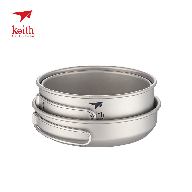 keith sheathed titanium pan lunch box lid bowl full titanium frying pan two bowls one cover portable outdoor folding handle cover pan rice bowl