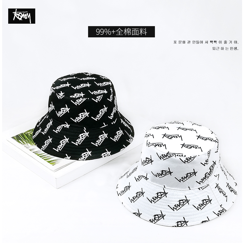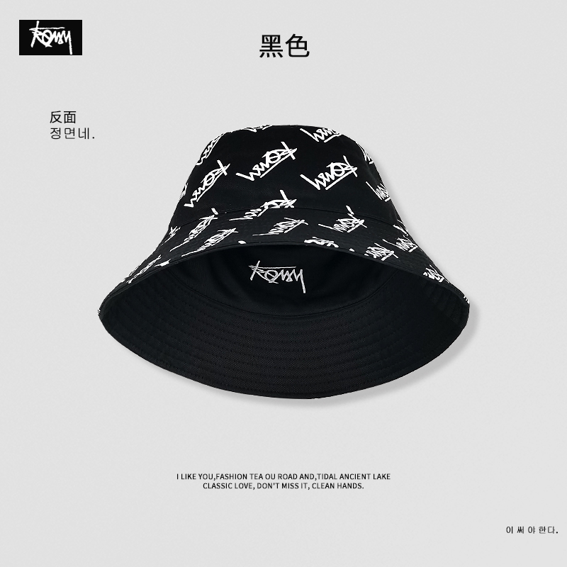 Two pieces of parent-child (black and black) two pieces of parent-child (black and white) two pieces of couple (black and white) double-sided cursive komy full of fisherman's hat blue double-sided light board