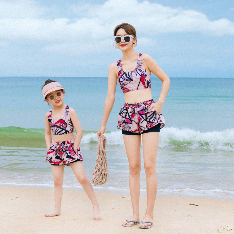 Parent-child Swimsuit Mother Woman New Conservative Diving Suit Bikini Three Sets To Woo Slim Girl Spa Children