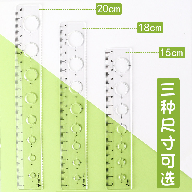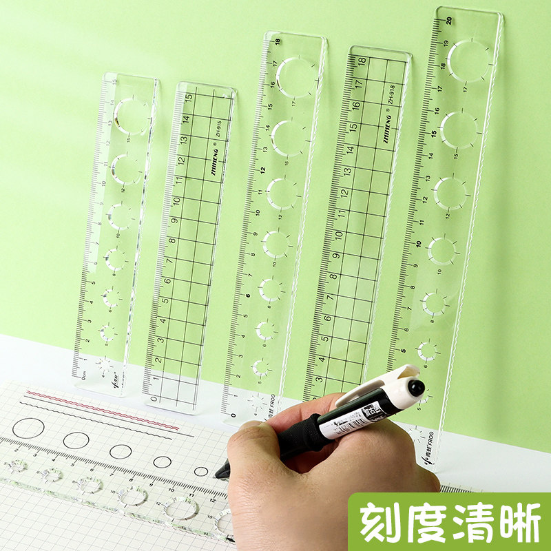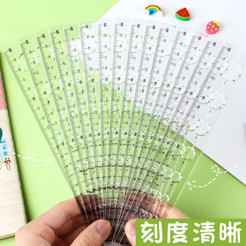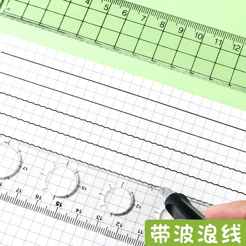 Transparent plastic ruler with wavy line 15cm18cm20CM students draw round hole ruler children's creative simple multifunctional scale drawing measuring wave ruler student stationery
