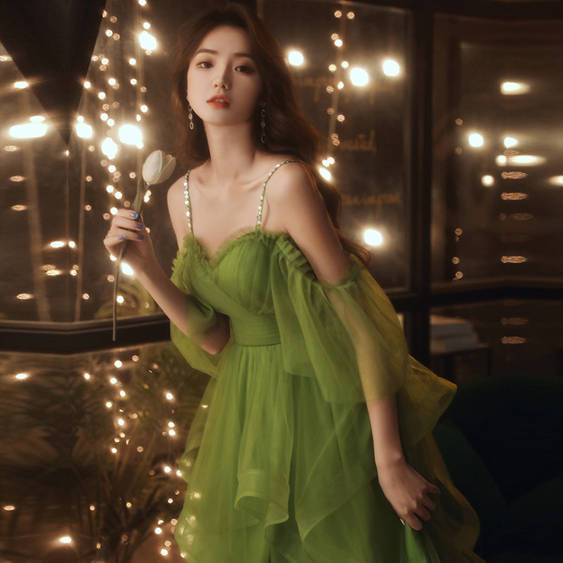 Green princess cuff irregular skirt hem with long version of bubblesleeve green (two wearing ways) irregular skirt hem yellow princess sleeve irregular skirt hem harness long version