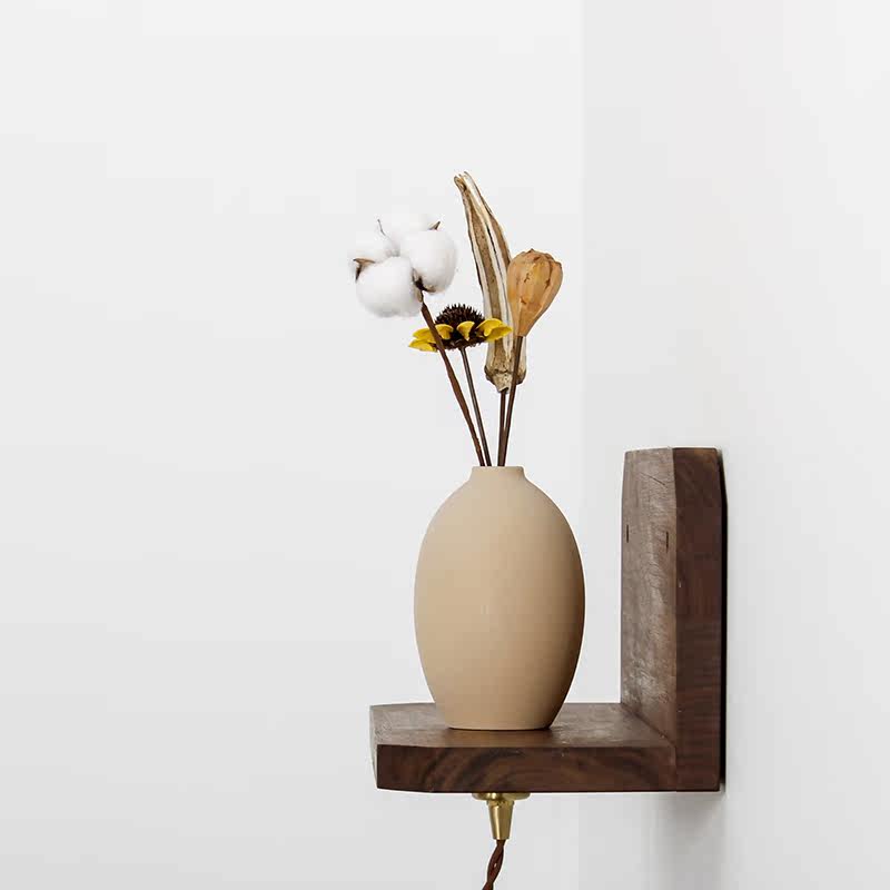 Green leaf black walnut brass retro wall lamp bedroom solid wood bedside lamp Nordic literature and art Japanese-style aisle porch lamp