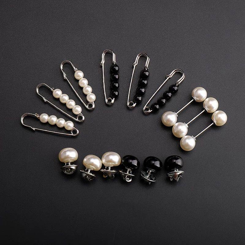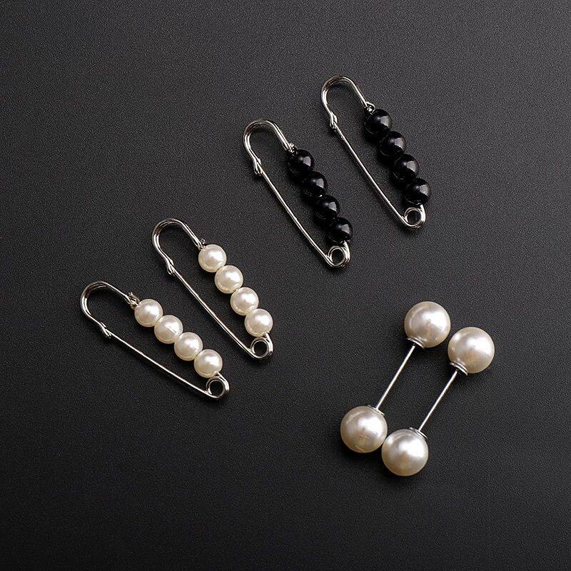 C003 Gradient 2-bead brooch (2 packs) C016 Silver double small white bead pin (3 packs) C005 Silver four-black small pin (3 packs) C050 White bead buckle pin (5 packs)