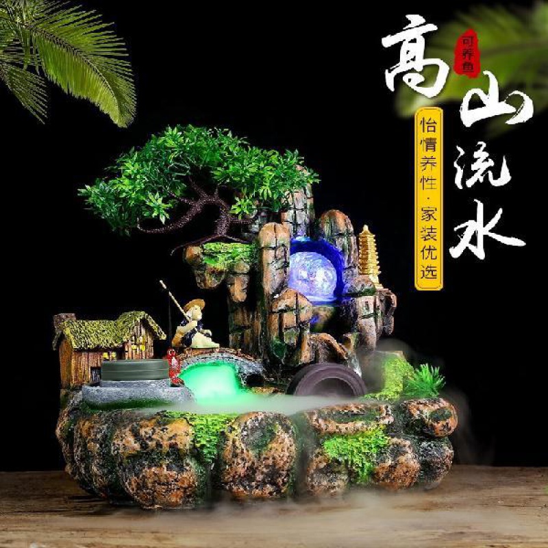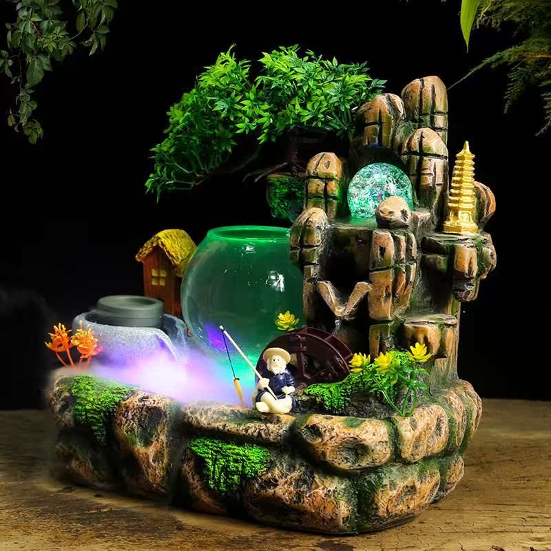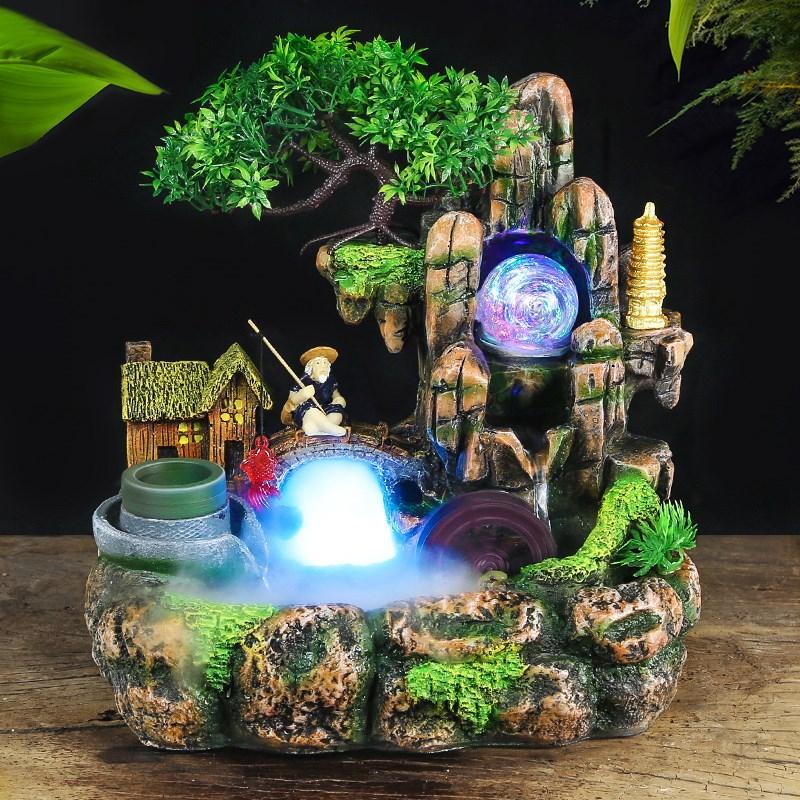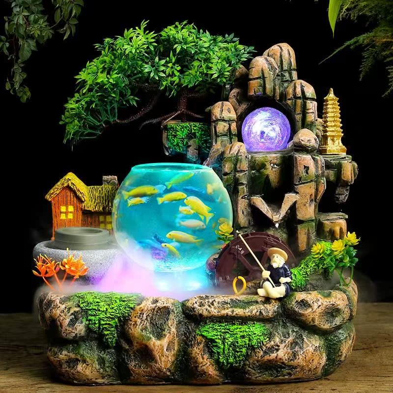 Fish Tank Fake Mountain Flowing Water Fountain Pendulum home Decorative Goods Office Fish Pond Humidifiers for Feng Shui Wheel Fishing Weng