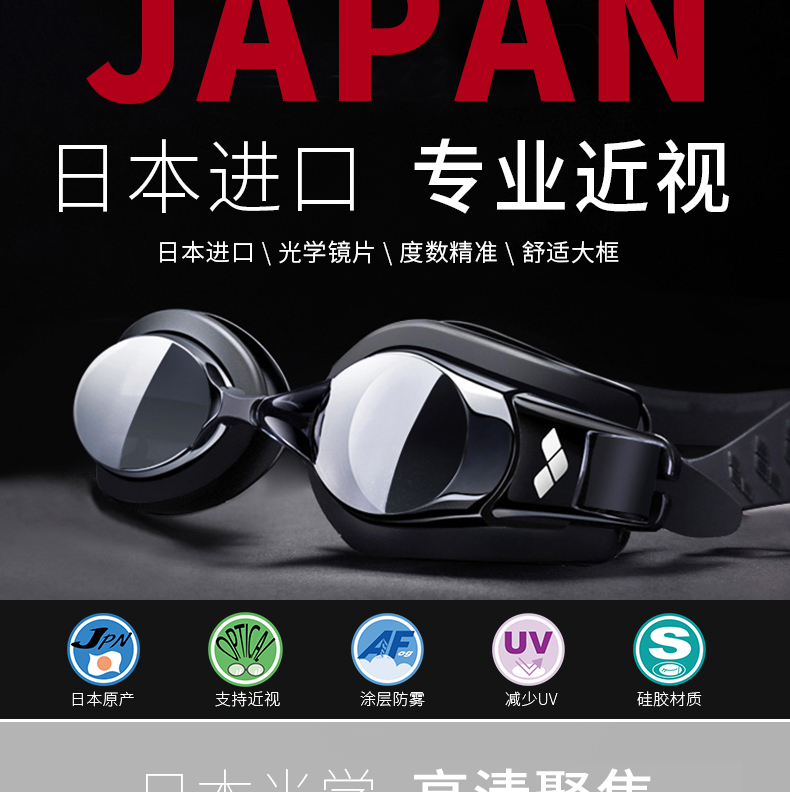 Arena myopia swimming goggles imported adult large frame HD anti-fog waterproof myopia swimming glasses AGY-700XN