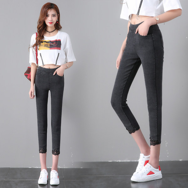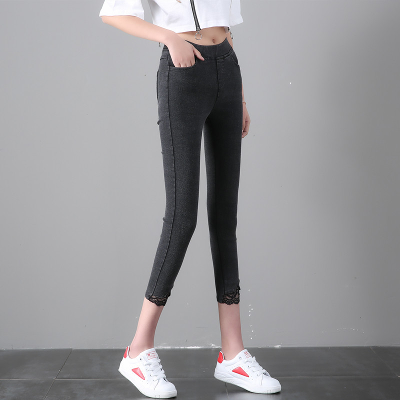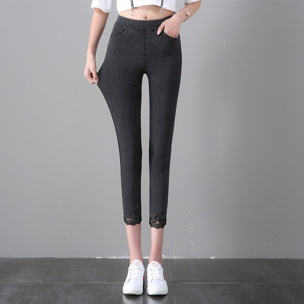 Large size eight points underwear women's outer wear Slim fit and thin summer thin section fat mm tight high waist stitching lace pants trendy