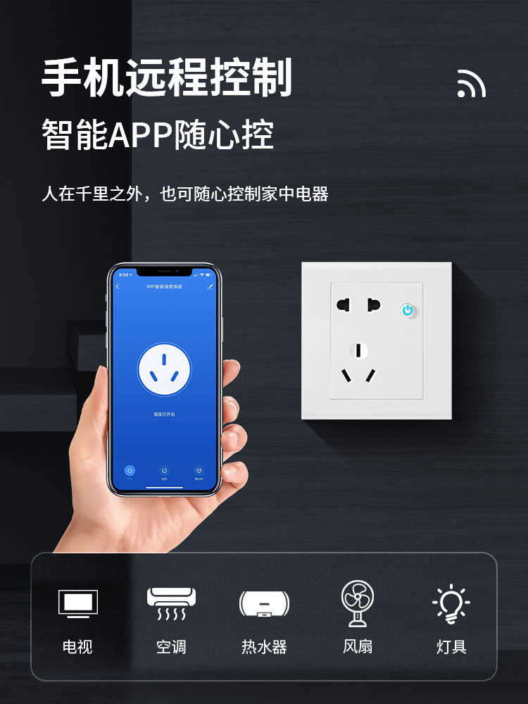 WIFI smart socket panel porous mobile phone remote remote control timed automatic power cut wall switch concealed for home