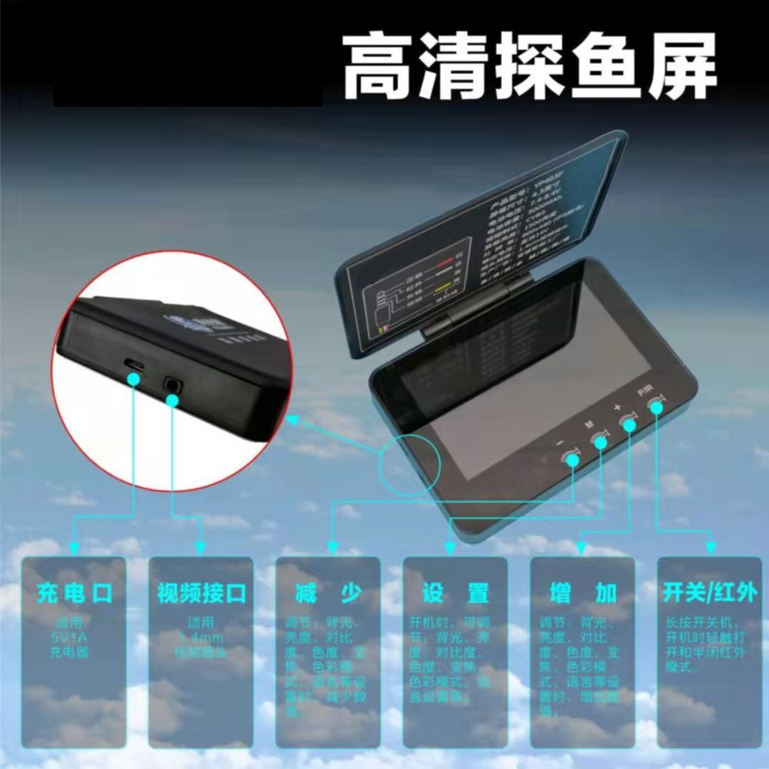 Aurora HD built-in high light Upgraded version 10 lights Luminous Star Morning New super sensitive Dragon Water Temperature Water Depth High Light Edition Blue Demon Ji High Light Edition 5.0 Three-sided Shade Full Waterproof 30 meters + Luminous Stars + Base 5 inch Full Waterproof + 30 meters Line + Jiaolong needs camera with cable